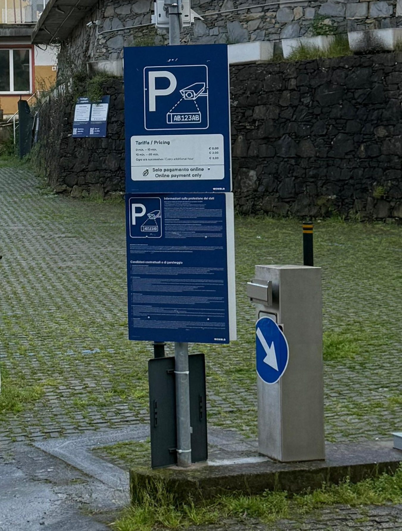 In ogni parcheggio vengono installati 2 tipi di cartelli: A) con le condizioni generali di utilizzo e B) informativi con il tempo di sosta consentito e l'importo della penale contrattuale. I cartelli, collocati agli ingressi, alle uscite e nel parcheggio, sono grandi e ben visibili. I proprietari dei veicoli, entrando nel parcheggio, ne accettano le condizioni di utilizzo.